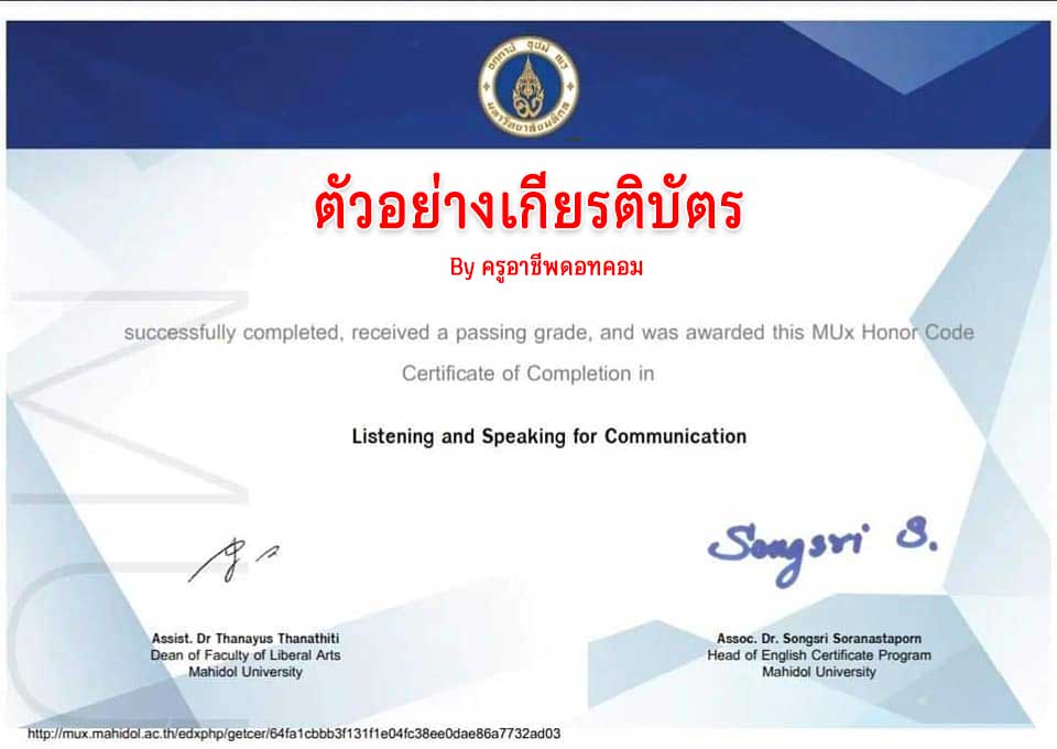 คอร์สเรียนฟรี! เรียนภาษาอังกฤษ Listening and Speaking for Communication พร้อมรับเกียรติบัตร 15 ชม. จาก มหาวิทยาลัยมหิดลฯ