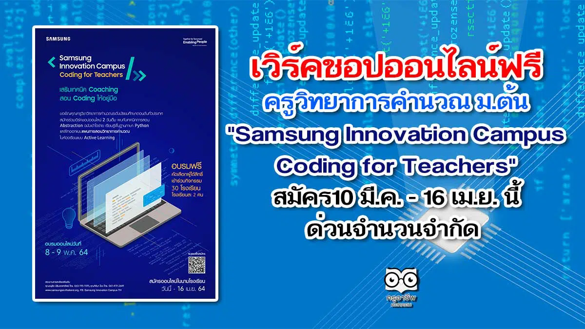 เวิร์คชอปออนไลน์ฟรี ครูวิทยาการคำนวณ ม.ต้น Samsung Innovation Campus – Coding for Teachers สมัคร10 มีนาคม – 16 เมษายน นี้ ด่วนจำนวนจำกัด