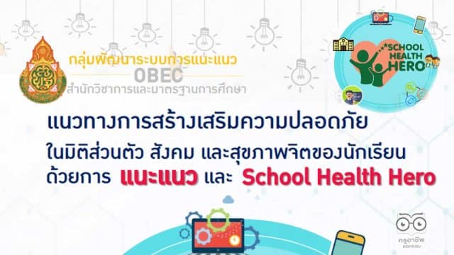 ดาวน์โหลด แนวทางการสร้างเสริมความปลอดภัยในมิติส่วนตัว สังคม และสุขภาพจิตของนักเรียน ด้วยการ แนะแนว และ School Health Hero โดยกลุ่มพัฒนาระบบการแนะแนว สพฐ.