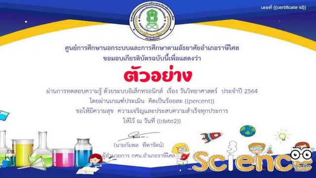 แบบทดสอบความรู้ออนไลน์ เรื่อง วันวิทยาศาสตร์ ประจำปี 2564 พร้อมรับเกียรติบัตรออนไลน์ เมื่อได้คะแนนร้อยละ 70 ขึ้นไป โดยห้องสมุดประชาชน “เฉลิมราชกุมารี” อำเภอราษีไศล จังหวัดศรีสะเกษ