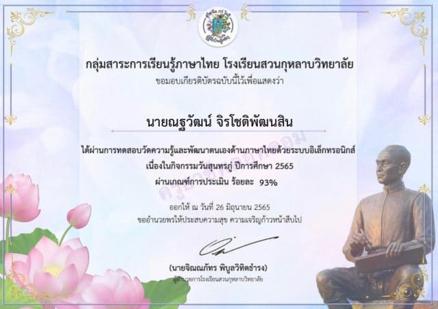 แบบทดสอบความรู้ เรื่อง ประวัติความเป็นมาของสุนทรภู่ เนื่องในวันสุนทรภู่ “สดุดีครูกลอนสุนทรภู่” ผ่านเกณฑ์ 80% รับเกียรติบัตรทางอีเมล โดยโรงเรียนสวนกุหลาบวิทยาลัย