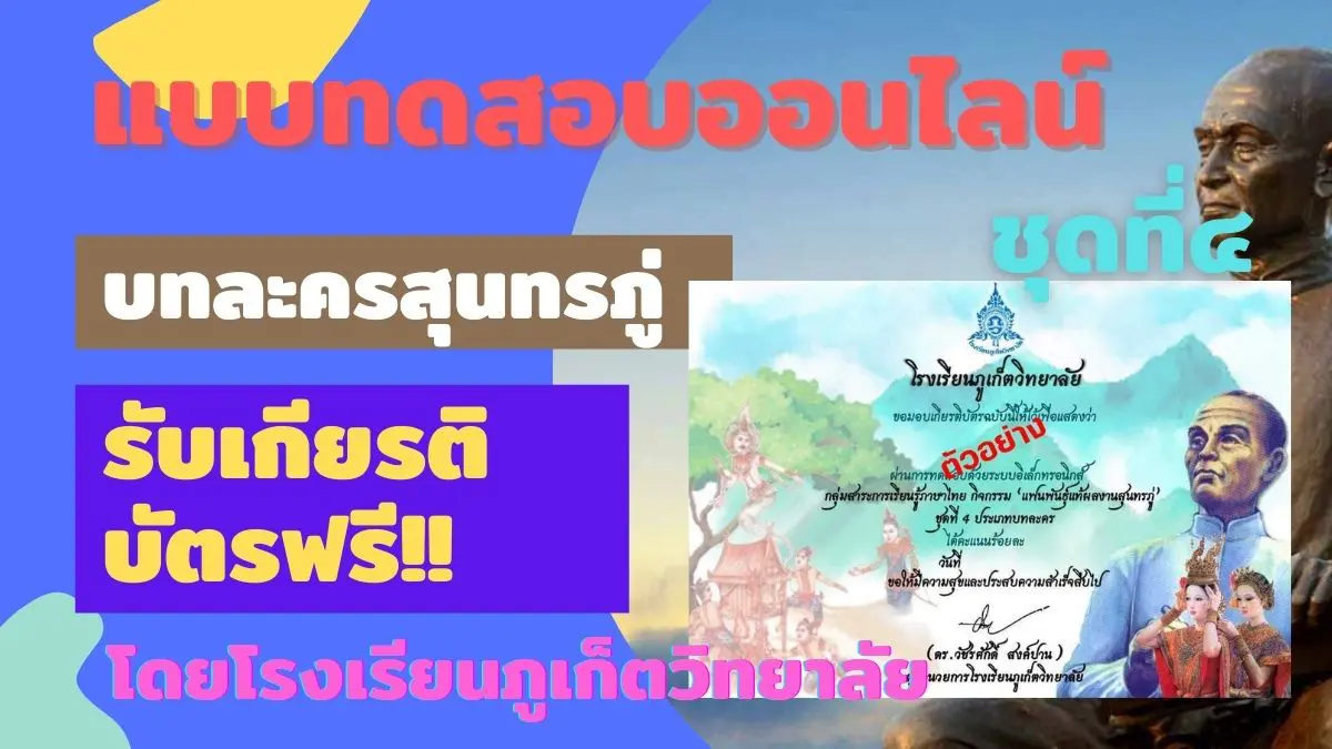แบบทดสอบออนไลน์ ชุดที่ 4 บทละครสุนทรภู่ ผ่านเกณฑ์ รับเกียรติบัตรออนไลน์ โดยโรงเรียนภูเก็ตวิทยาลัย