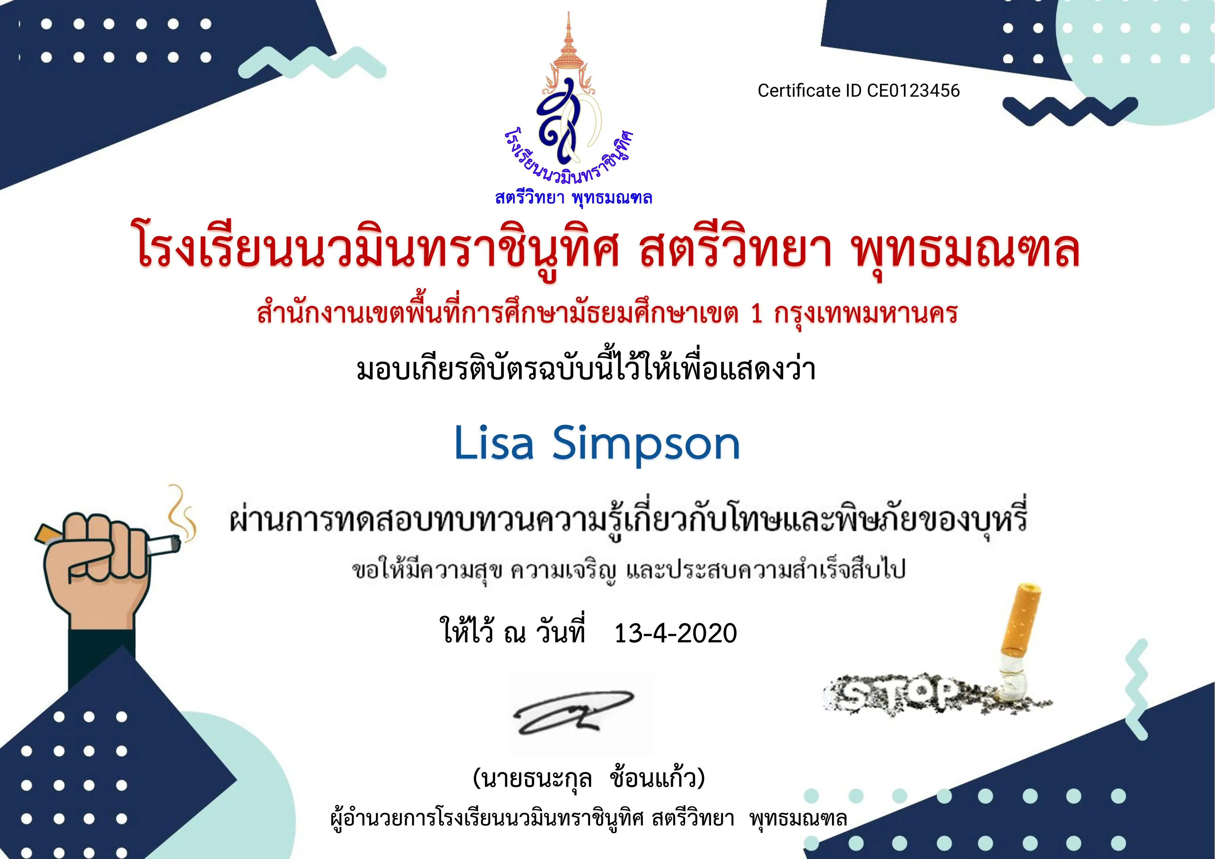 […] 54. แบบทดสอบออนไลน์ เรื่องโทษและพิษภัยของบุหรี่ โดยโรงเรียนนวมินทราชินูทิศ สตรีวิทยา พุทธมณฑล คลิกที่นี่ […]