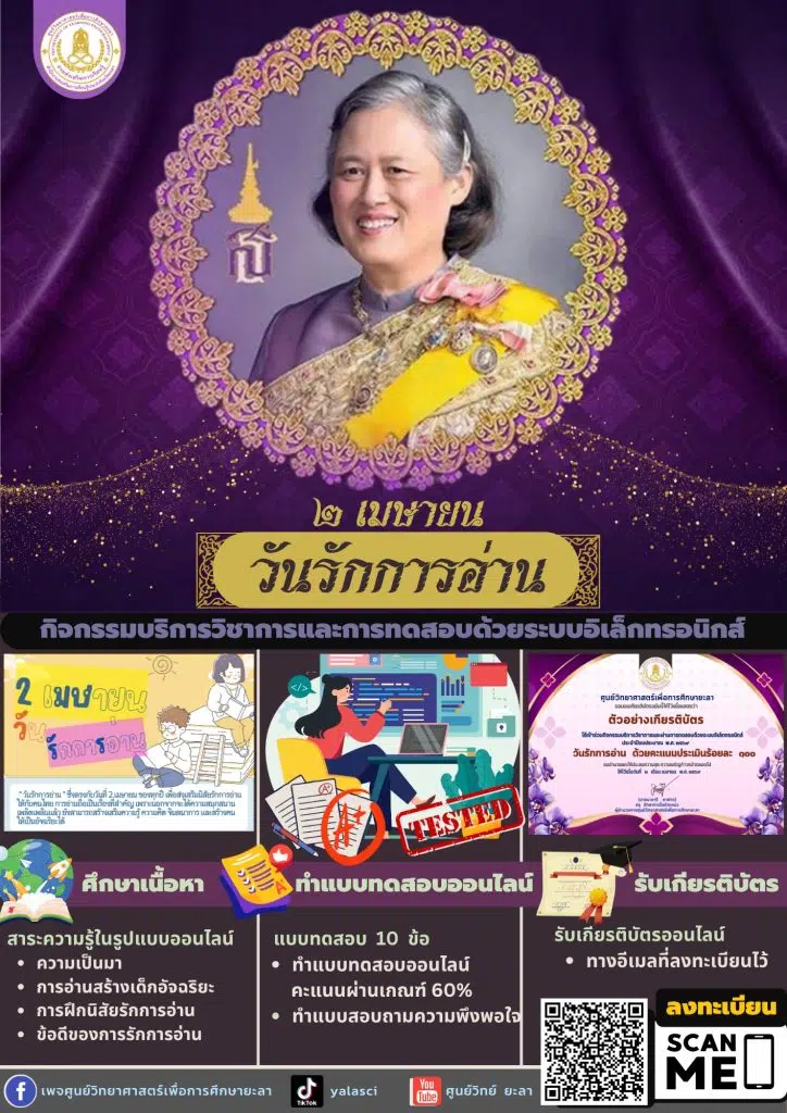 แบบทดสอบออนไลน์ เรื่อง วันรักการอ่าน ผ่านเกณฑ์ 60% รับเกียรติบัตรทางอีเมล โดยศูนย์วิทยาศาสตร์เพื่อการศึกษายะลา