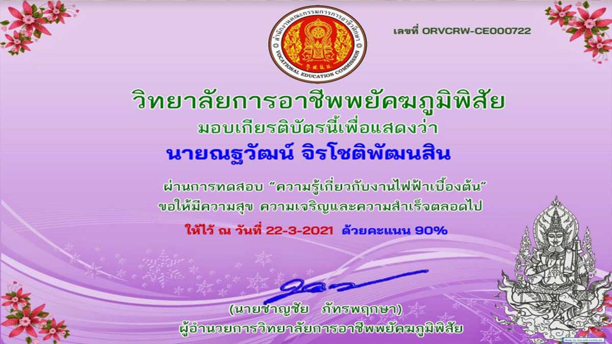 แผนกช่างไฟฟ้ากำลัง วิทยาลัยการอาชีพพยัคฆภูมิพิสัย ขอเชิฐทำแบบทดสอบบออนไลน์ เรื่องความรู้เบื้องต้นเกี่ยวกับงานไฟฟ้า ผ่านการทดสอบ 80% ได้รับเกีบรติบัตรทางอีเมลล์ ฟรี
