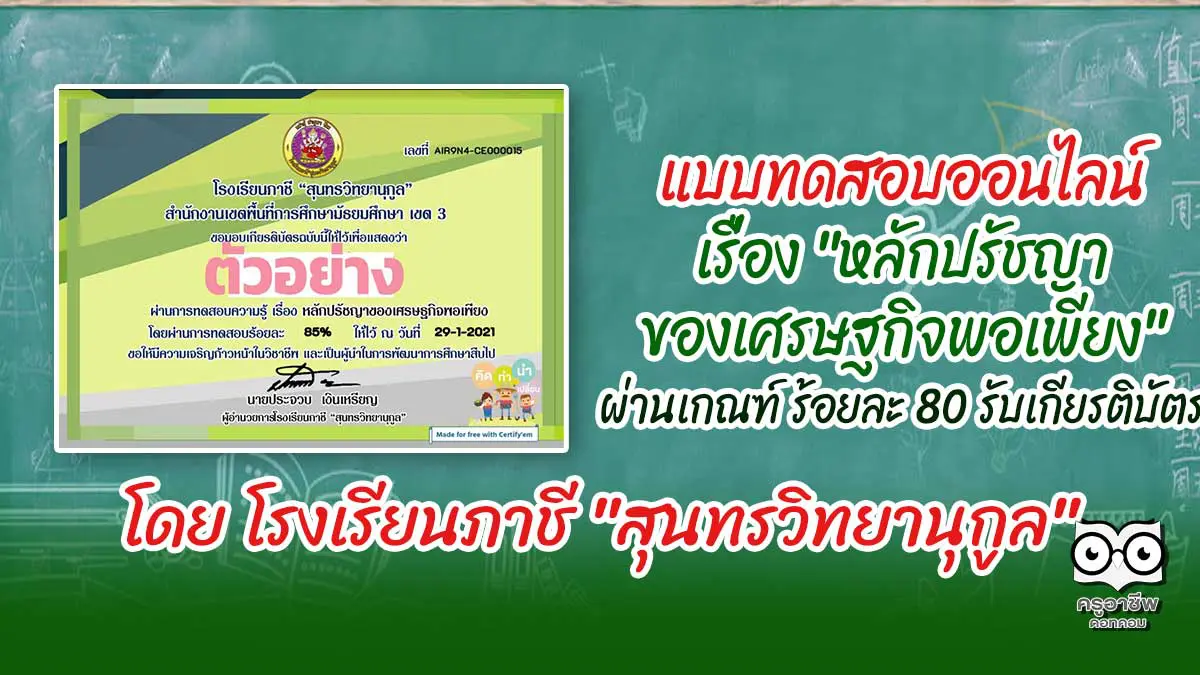 แบบทดสอบการเรียนรู้ตามหลักปรัชญาของเศรษฐกิจพอเพียง โรงเรียนภาชี “สุนทรวิทยานุกูล” ผ่านร้อยละ 80 จึงจะได้รับเกียรติบัตร(ส่งตามที่อยู่อีเมล กรุณากรอกให้ถูกต้อง)