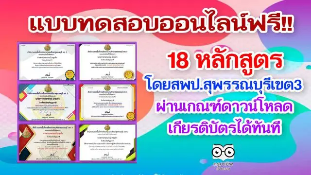 แบบทดสอบออนไลน์ 18 หลักสูตร จาก สพป.สุพรรณบุรีเขต3 โหลดเกียรติบัตรได้ทันที