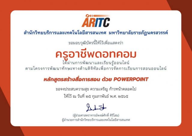 แบบทดสอบ การอบรมสร้างสื่อการสอน ด้วย PowerPoint ผ่านเกณฑ์รับเกียรติบัตร โดยสำนักวิทยบริการและเทคโนโลยีสารสนเทศ มหาวิทยาลัยราชภัฏนครสวรรค์