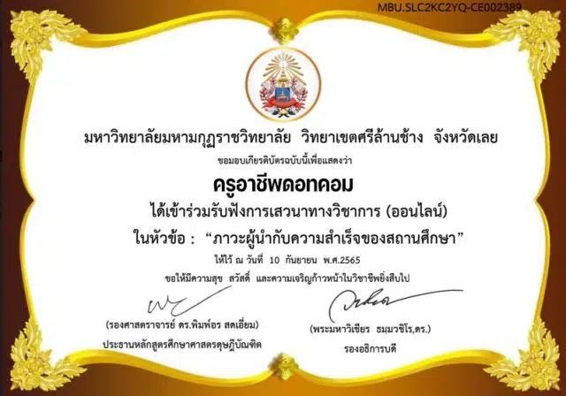 แบบประเมินรับเกียรติบัตร เรื่อง ภาวะผู้นำกับความสำเร็จของสถานศึกษา โดยมหาวิทยาลัยมหามกุฏราชวิทยาลัย