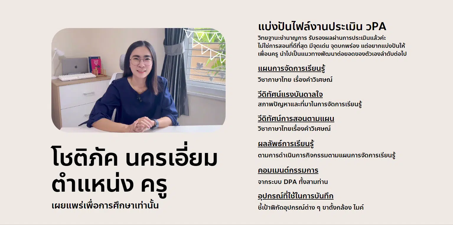 แบ่งปันไฟล์ วPA ชำนาญการ (ผ่านการประเมิน 3 ผ่าน) วิชาภาษาไทย เรื่องคำวิเศษณ์ ฟรี ไม่มีค่าใช้จ่าย โดยเพจ Mom Plawan Class เพื่อการศึกษาเท่านั้น!