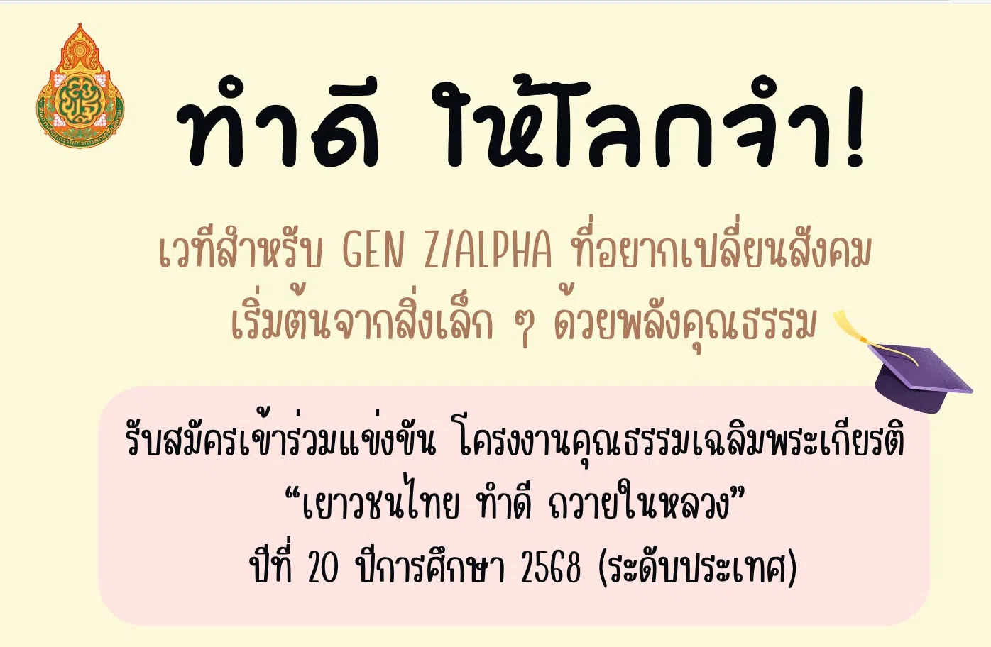 “เยาวชนไทย ทำดี ถวายในหลวง” ปีที่ 20 ปีการศึกษา 2568 (ระดับประเทศ)