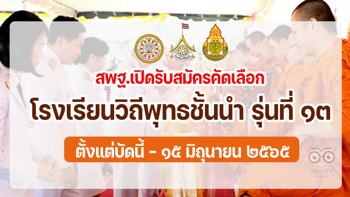 ขอเชิญโรงเรียนวิถีพุทธ สมัครเข้ารับการคัดเลือกเป็นโรงเรียนวิถีพุทธชั้นนำ รุ่นที่ ๑๓ ตั้งแต่บัดนี้ – ๑๕ มิถุนายน ๒๕๖๕