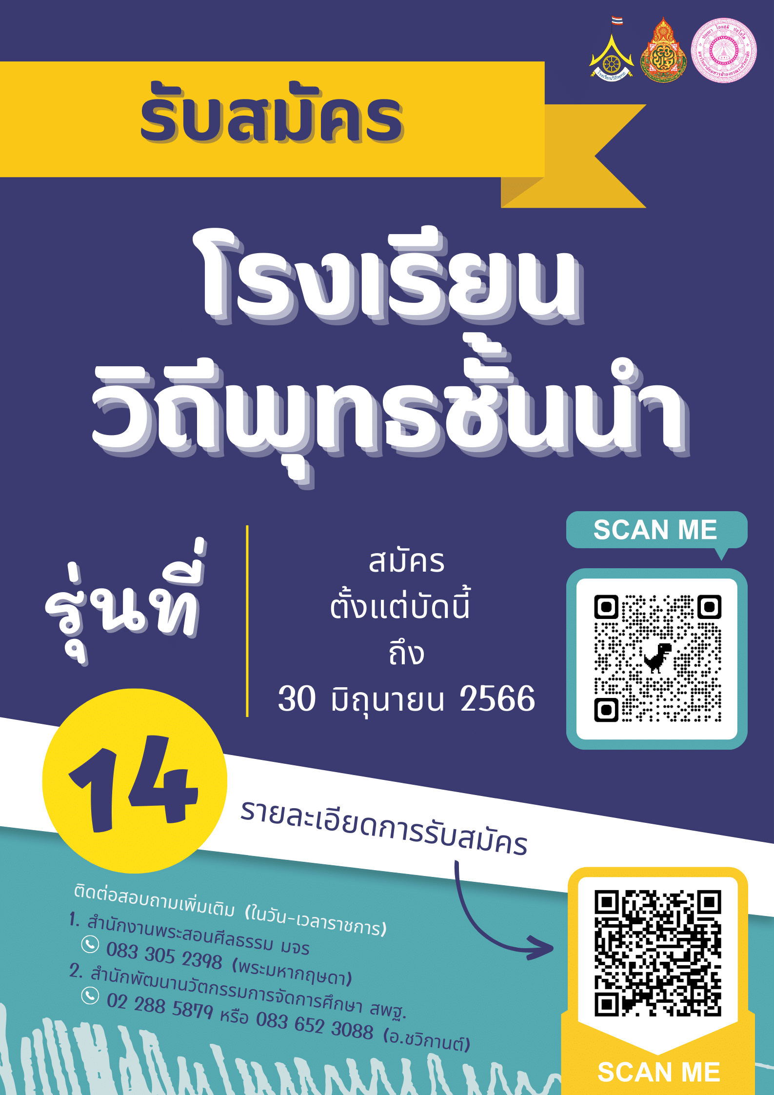 สพฐ.เปิดรับสมัครโรงเรียนวิถีพุทธชั้นนำ รุ่นที่ ๑๔ ตั้งแต่บัดนี้ ถึงวันที่ ๓๐ มิถุนายน ๒๕๖๖