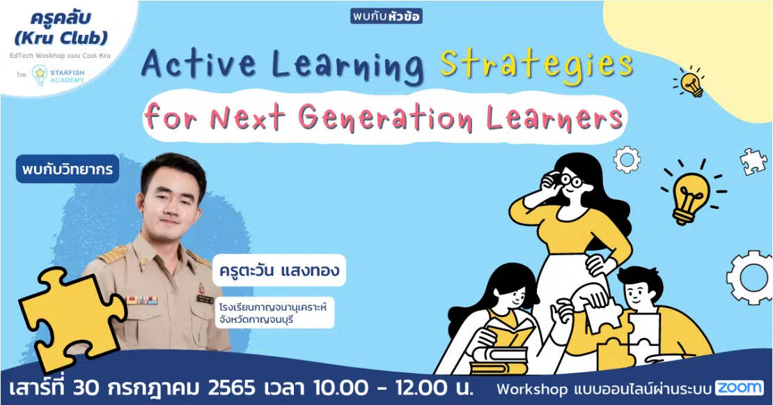 อบรมออนไลน์ฟรี!! หัวข้อ “Active Learning Strategies for Next Generation Learners” วันเสาร์ที่ 30 กรกฎาคม 2565 เวลา 10:00 – 12:00 น. รับเกียรติบัตรฟรี โดย Starfish Academy