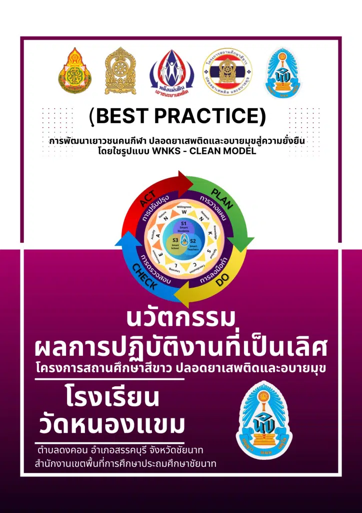 เผยแพร่นวัตกรรม Best Practice เรื่อง การพัฒนาเยาวชนคนกีฬา ปลอดยาเสพติดและอบายมุข สู่ความยั่งยืน โดยใช้รูปแบบ WNKS-CLEAN MODEL ของโรงเรียนวัดหนองแขม สำนักงานเขตพื้นที่การศึกษาประถมศึกษาชัยนาท ในโครงการสถานศึกษาสีขาว ปลอดยาเสพติดและอบายมุข เพื่อเป็นแนวทางในการช่วยกันป้องกัน แก้ไขปัญหายาเสพติดของเยาวชน และประเทศชาติต่อไป