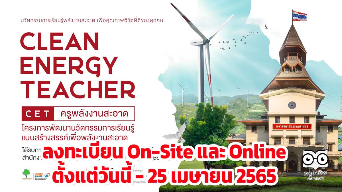 ประชาสัมพันธ์ครูเข้าร่วมงาน Clean Energy Teacher for Change ครูพลังงานสะอาด เพื่อการปลี่ยนแปลง วันที่ 30 เมษายน – 1 พฤษภาคม 2565 (ลงทะเบียนตั้งแต่วันนี้ – 25 เมษายน 2565) จัดโดยคณะวิทยาการเรียนรู้และศึกษาศาสตร์ มหาวิทยาลัยธรรมศาสตร์ (มธ.)