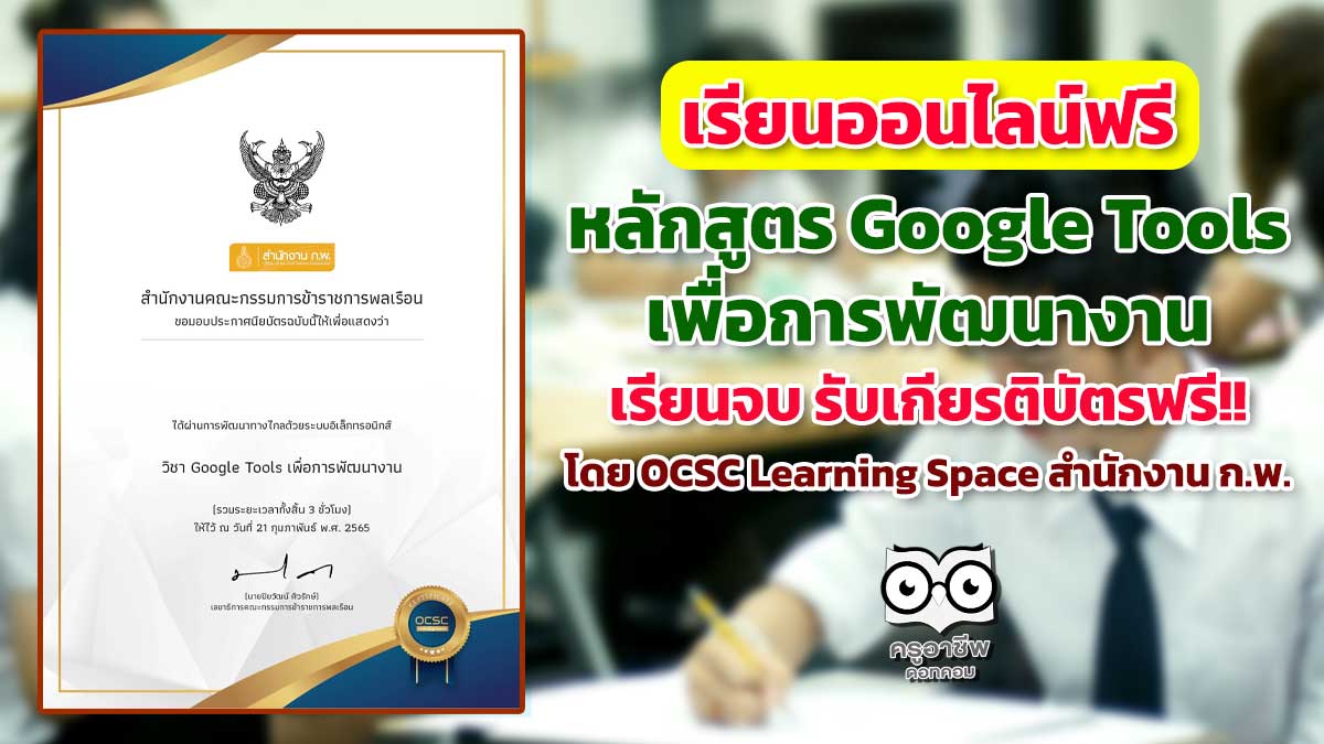 ขอเชิญเรียนออนไลน์ พร้อมรับเกียรติบัตรฟรี หลักสูตร Google Tools เพื่อการพัฒนางาน โดย OCSC Learning Space สำนักงาน ก.พ.