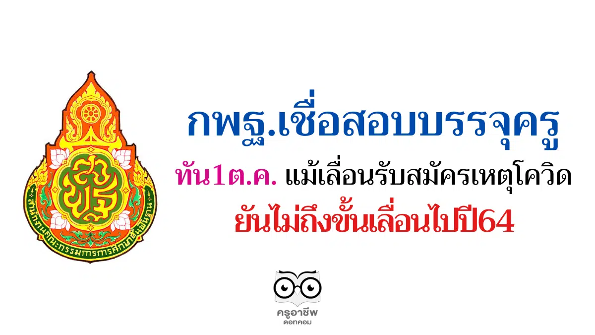 กพฐ.เชื่อสอบบรรจุครูทัน1ต.ค. แม้เลื่อนรับสมัครเหตุโควิด ยันไม่ถึงขั้นเลื่อนไปปี64 คาดลงสนามสอบกว่าแสนราย