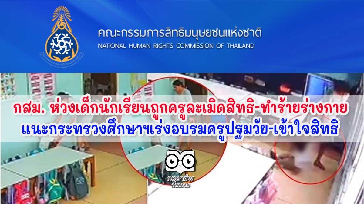 กสม. ห่วงเด็กนักเรียนถูกครูละเมิดสิทธิ-ทำร้ายร่างกาย แนะกระทรวงศึกษาฯ เร่งอบรมครูปฐมวัย-เข้าใจสิทธิ-มีจิตวิญญาณครูและทักษะดูแลเด็ก