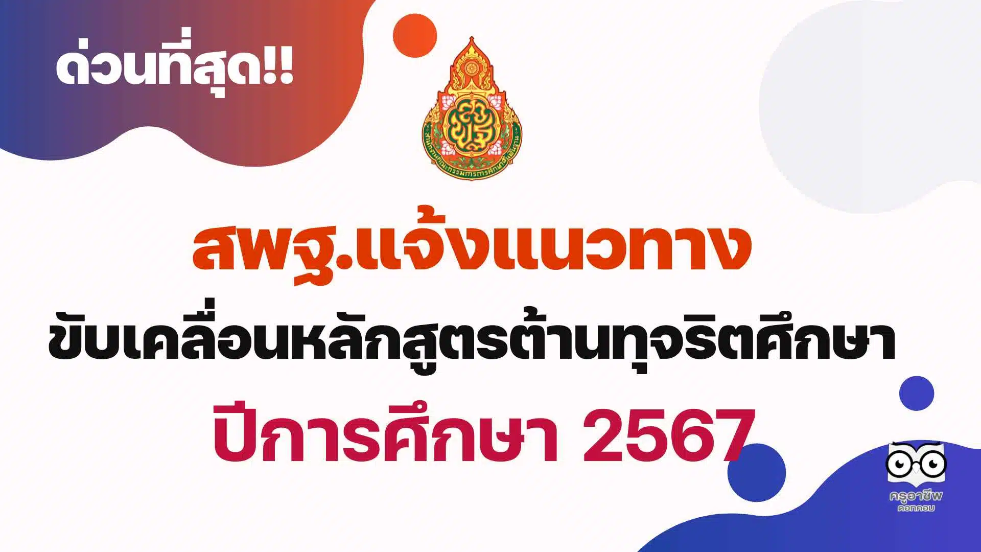ด่วนที่สุด สพฐ.แจ้งแนวทาง การขับเคลื่อนหลักสูตรต้านทุจริตศึกษา ตั้งแต่ภาคเรียนที่ 1 ปีการศึกษา 2567 เป็นต้นไป