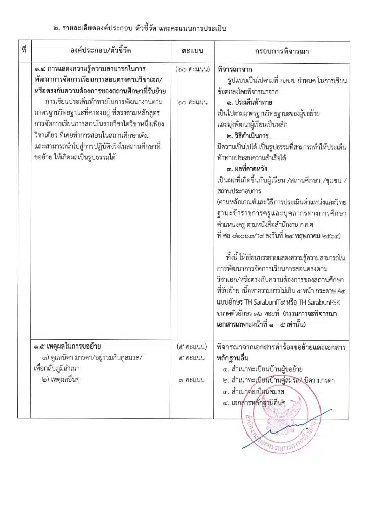 รายละเอียดตัวขี้วัดและคะแนนในการประเมิน ตามองค์ประกอบการประเมินศักยภาพของผู้ประสงค์ขอย้าย ตำแหน่งครู (การย้ายกรณีปกติ) สังกัดสำนักงานคณะกรรมการการอาชีวศึกษา