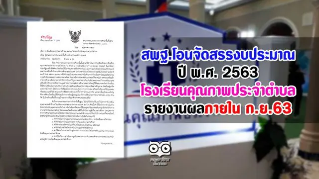 การโอนจัดสรรงบประมาณปี พ.ศ. 2563 ของโครงการโรงเรียนคุณภาพประจำตำบล รายงานผลภายในเดือน กันยายน 2563