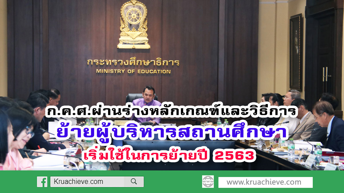 ก.ค.ศ.ผ่านร่างหลักเกณฑ์และวิธีการย้ายผู้บริหารสถานศึกษา เริ่มใช้ในการย้ายปี 2563