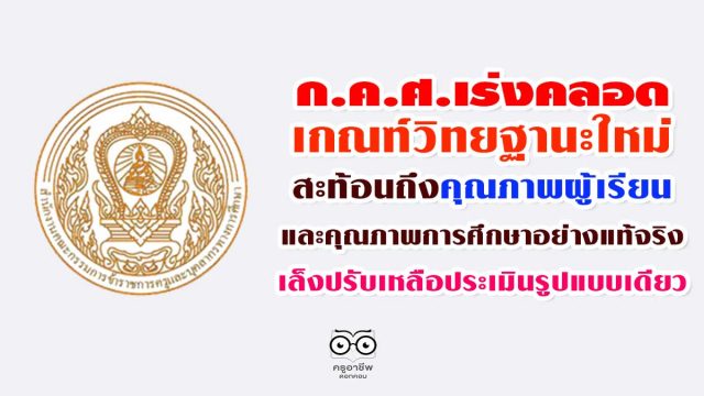 ก.ค.ศ.เร่งคลอดเกณฑ์วิทยฐานะใหม่ที่สะท้อนถึงคุณภาพผู้เรียน และคุณภาพการศึกษาอย่างแท้จริง เล็งปรับเหลือประเมินรูปแบบเดียว