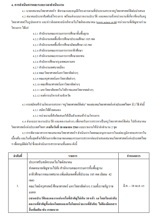 2. ผู้สนใจส่งแบบรายงานประวัติและผลงานไปยังสมาคมวิทยาศาสตร์แห่งประเทศไทยในพระบรมราชูปถัมภ์ ภายในวันที่ 18 เมษายน2565