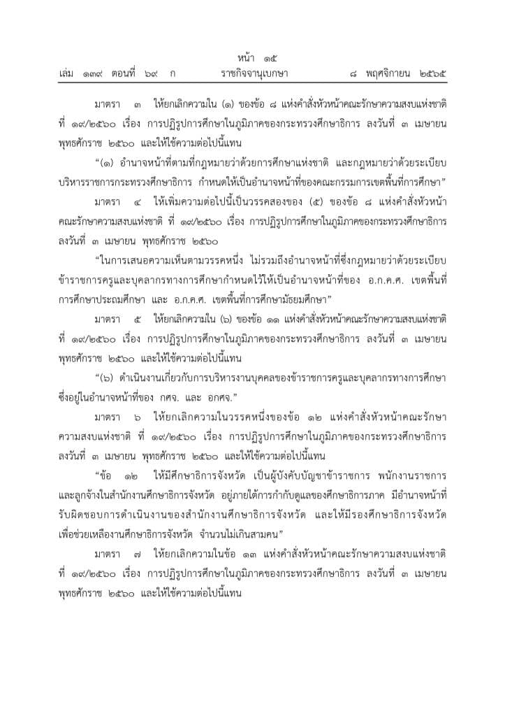 ประกาศ คืนอำนาจ อ.ก.ค.ศ. เขตพื้นที่การศึกษา มีผลแล้ว พร้อมสรรหา ให้แล้วเสร็จภายในวันที่ 6 กุมภาพันธ์ 2566