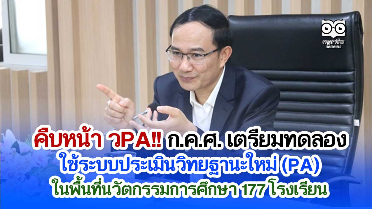 คืบหน้า วPA!! ก.ค.ศ. เตรียมทดลอง ใช้ระบบประเมินวิทยฐานะใหม่ (PA) ในพื้นที่นวัตกรรมการศึกษา 177 โรงเรียน ก.ค.ศ. ประชุมหารือเตรียมทดลองใช้ระบบประเมินวิทยฐานะใหม่ (PA) ในโรงเรียนพื้นที่นวัตกรรมการศึกษา 177 โรงเรียน ก่อนเปิดระบบ 1 ตุลาคม 2564 นี้