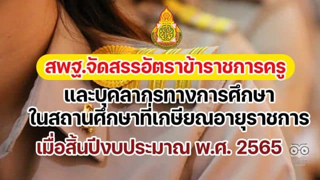 ด่วน!! สพฐ.จัดสรรอัตราข้าราชการครูและบุคลากรทางการศึกษาในสถานศึกษาที่เกษียณอายุราชการ เมื่อสิ้นปีงบประมาณ พ.ศ. 2565 ลงวันที่ 3 ตุลาคม 2565 ตำแหน่งครูผู้ช่วย จำนวน 14,595 อัตรา
