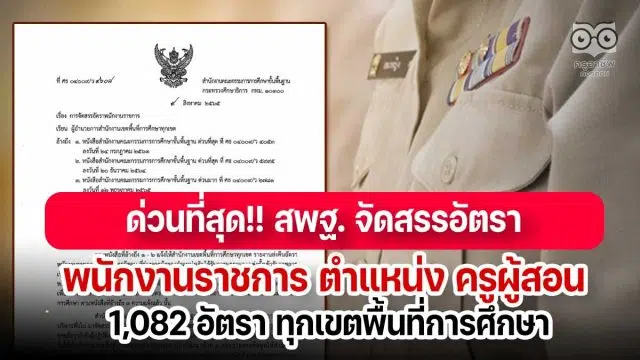 ด่วนที่สุด!! สพฐ. จัดสรรอัตราพนักงานราชการ ตำแหน่ง ครูผู้สอน 1,082 อัตรา ทุกเขตพื้นที่การศึกษา
