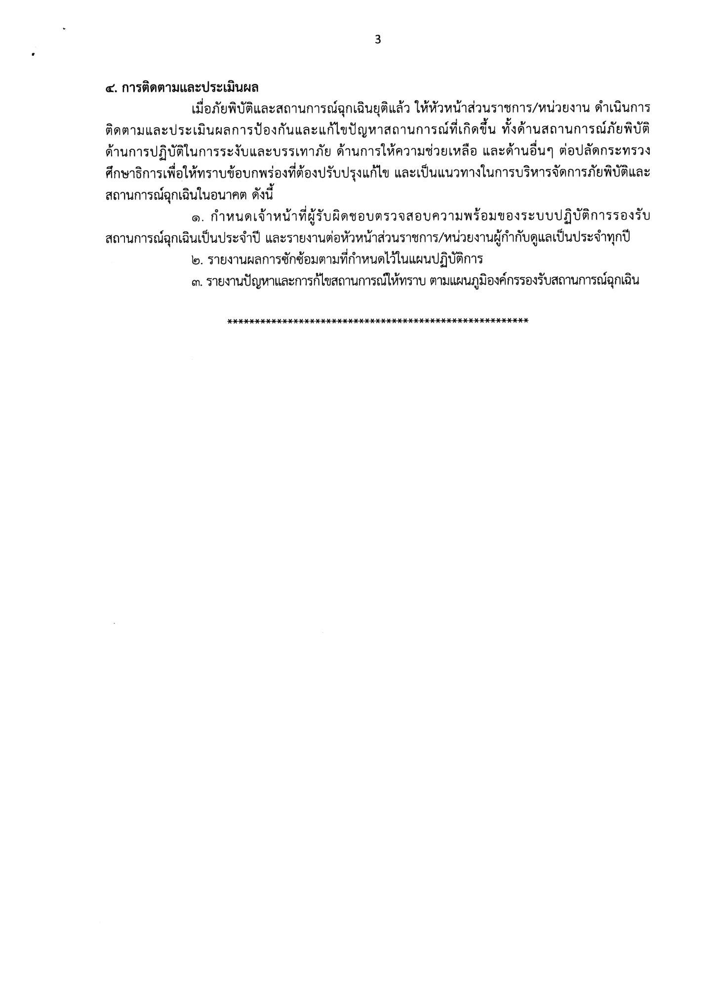 3. สำนักงานเขตพื้นที่การศึกษาและสถานศึกษาในสังกัดรายงานเหตุการณ์ตามสถานการณ์ เพื่อเป็นข้อมูลในการให้ความช่วยเหลือต่อไป