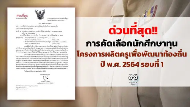 ด่วนที่สุด เรื่อง การคัดเลือกนักศึกษาทุนโครงการผลิตครูเพื่อพัฒนาท้องถิ่น ปี พ.ศ. 2564 รอบที่ 1