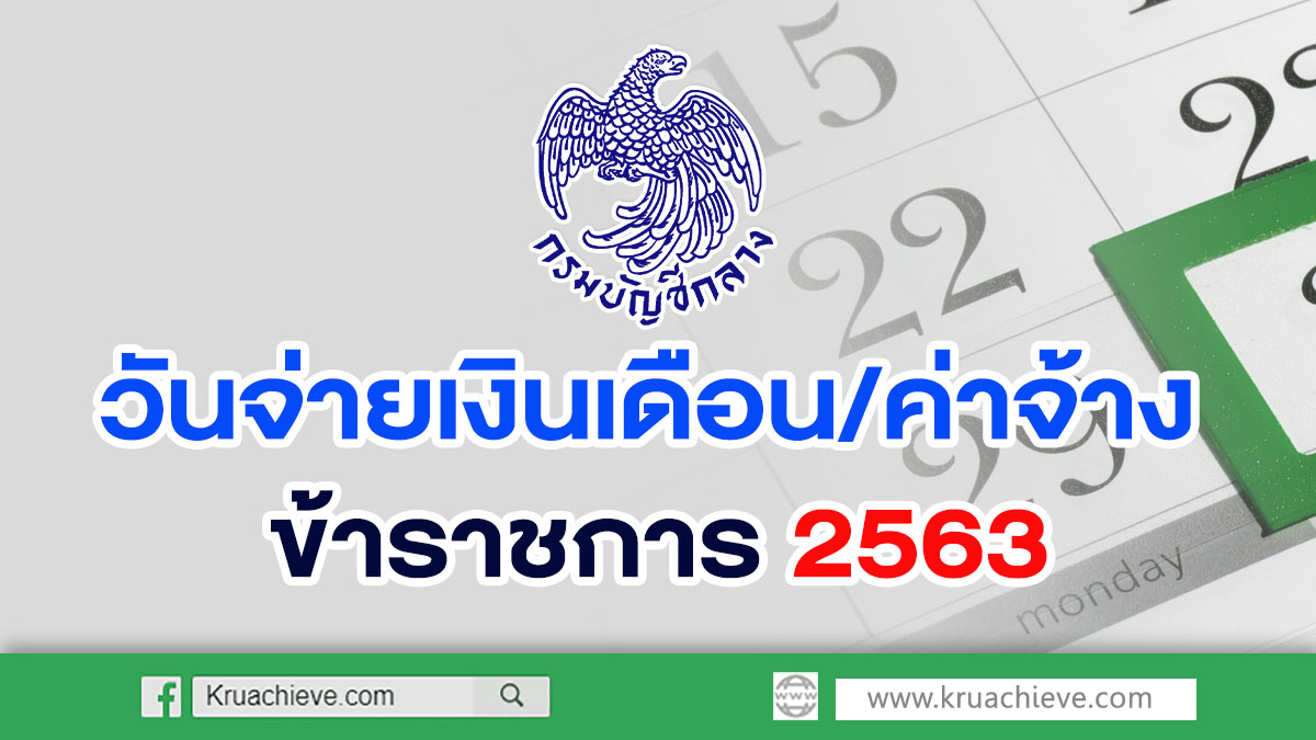 วันจ่ายเงินเดือนข้าราชการ มีนาคม 2563 >>> 26 มีนาคม 2563