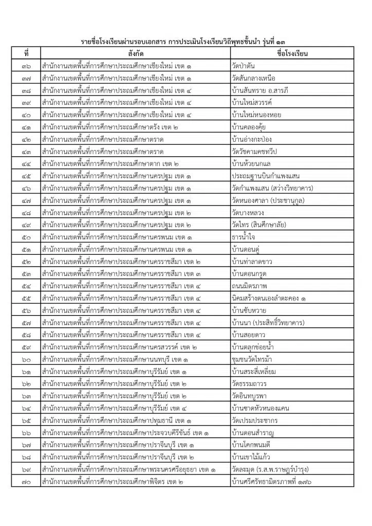 สพฐ.ประกาศรายชื่อโรงเรียนที่ผ่านการคัดเลือกรอบเอกสาร โรงเรียนวิถีพุทธชั้นนำ รุ่นที่ ๑๓ จำนวน ๑๓๖ โรงเรียน