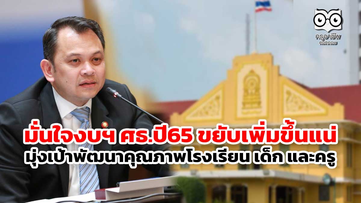 “ผมเชื่อมั่นว่างบประมาณปี 65 ของศธ.โดยเฉพาะงบด้านการพัฒนาจะขยับเพิ่มมากขึ้นอย่างแน่นอน และไม่กังวลว่างบประมาณจะถูกตัดไปอีก เพราะเราได้วางแผนงานการศึกษาที่ชัดเจน เนื่องจากที่ผ่านมาที่เราต้องโดนตัดงบประมาณออกไปบางส่วนนั้น ผมคิดว่าสำนักงบประมาณอาจยังเห็นภาพของการขับเคลื่อนงานด้านการศึกษาบางโครงการไม่ชัดเจนเท่านั้น”