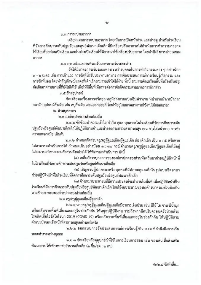 มาตรการในการเปิดสถานศึกษาระดับปฐมวัย สังกัด อปท. ภาคเรียนที่ 1 ปีการศึกษา 2563 ในช่วงสถานการณ์การแพร่ระบาด COVID-19