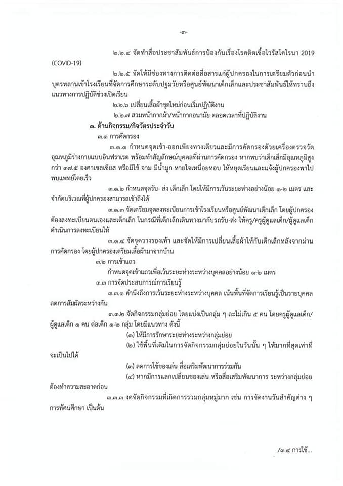 มาตรการในการเปิดสถานศึกษาระดับปฐมวัย สังกัด อปท. ภาคเรียนที่ 1 ปีการศึกษา 2563 ในช่วงสถานการณ์การแพร่ระบาด COVID-19