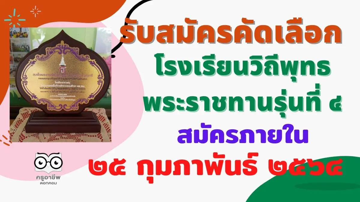 รับสมัครคัดเลือกโรงเรียนวิถีพุทธพระราชทานรุ่นที่ ๔ สมัครภายใน ๒๕ กุมภาพันธ์ ๒๕๖๔