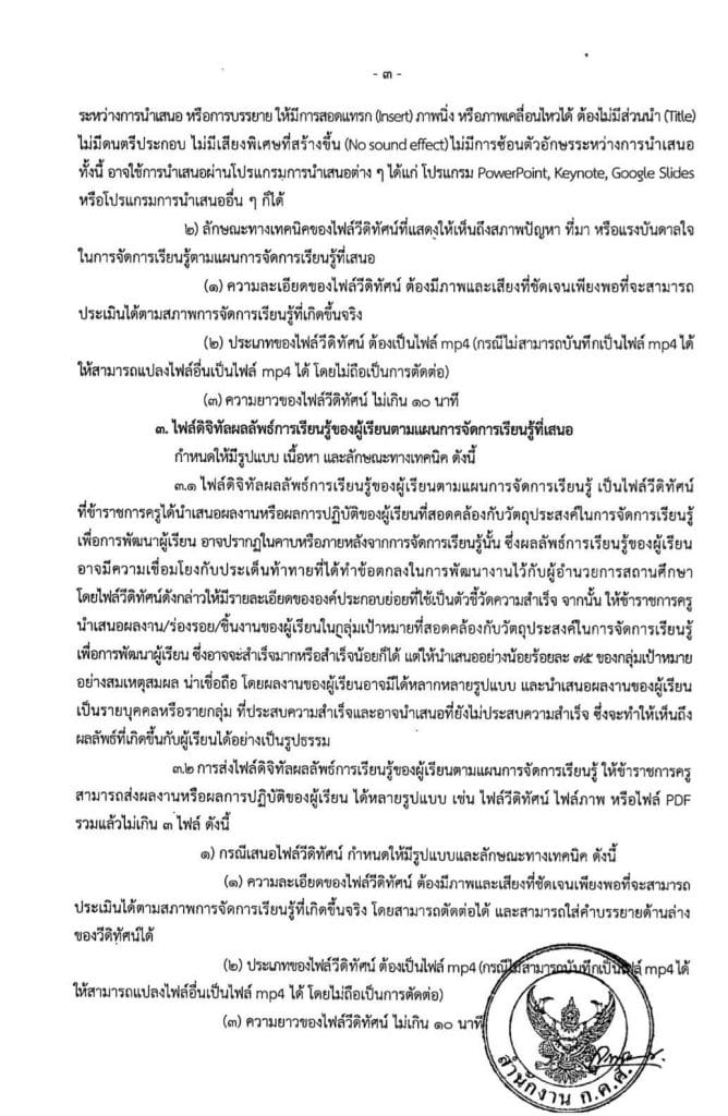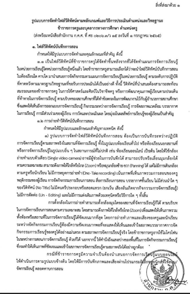 รายละเอียดเพิ่มเตอท : เว็บไซต์ ก.ค.ศ. ว15/2565 รูปแบบการจัดทำไฟล์วีดิทัศน์ตามหลักเกณฑ์และวิธีการประเมินตำแหน่งและวิทยฐานะข้าราชการครูและบุคลากรทางการศึกษา ตำแหน่งครู ตำแหน่งผู้บริหารสถานศึกษา และตำแหน่งศึกษานิเทศก์ (otepc.go.th)