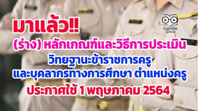 (ร่าง) หลักเกณฑ์และวิธีการประเมินตำแหน่งและวิทยฐานะข้าราชการครูและบุคลากรทางการศึกษา ตำแหน่งครู ประกาศใช้ 1 พฤษภาคม 2564 ยื่นประเมินตามหลักเกณฑ์ใหม่ ได้ตั้งแต่เดือนตุลาคม 2564 เป็นต้นไป