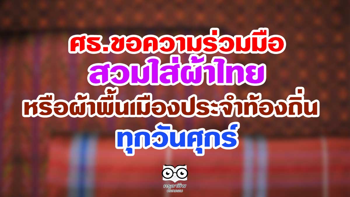 ศธ.ขอความร่วมมือข้าราชการครูและบุคลากรทางการศึกษาสวมใส่ผ้าไทยหรือผ้าพื้นเมืองประจำท้องถิ่น ทุกวันศุกร์