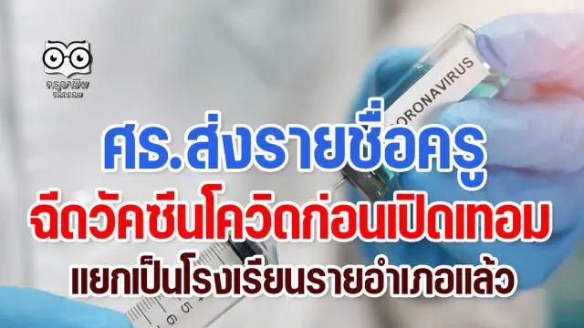 ศธ.ส่งรายชื่อครู ฉีดวัคซีนโควิดก่อนเปิดเทอม แยกเป็นโรงเรียนรายอำเภอแล้ว
