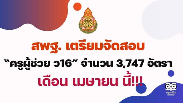 สพฐ. เตรียมจัดสอบ ครูผู้ช่วย ว16 ปี 2567 จำนวน 3,747 อัตรา เม.ย.นี้ สอบครูผู้ช่วย 2567 ยันเลื่อนสอบไม่กระทบการเรียนการสอน เนื่องจากเป็นช่วงปิดภาคเรียน