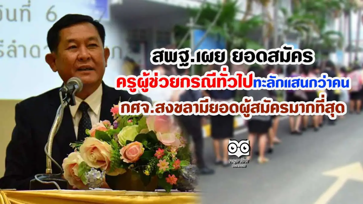 สพฐ.เผย ยอดสมัครครูผู้ช่วยกรณีทั่วไปทะลักแสนกว่าคน กศจ.สงขลามียอดผู้สมัครมากที่สุด