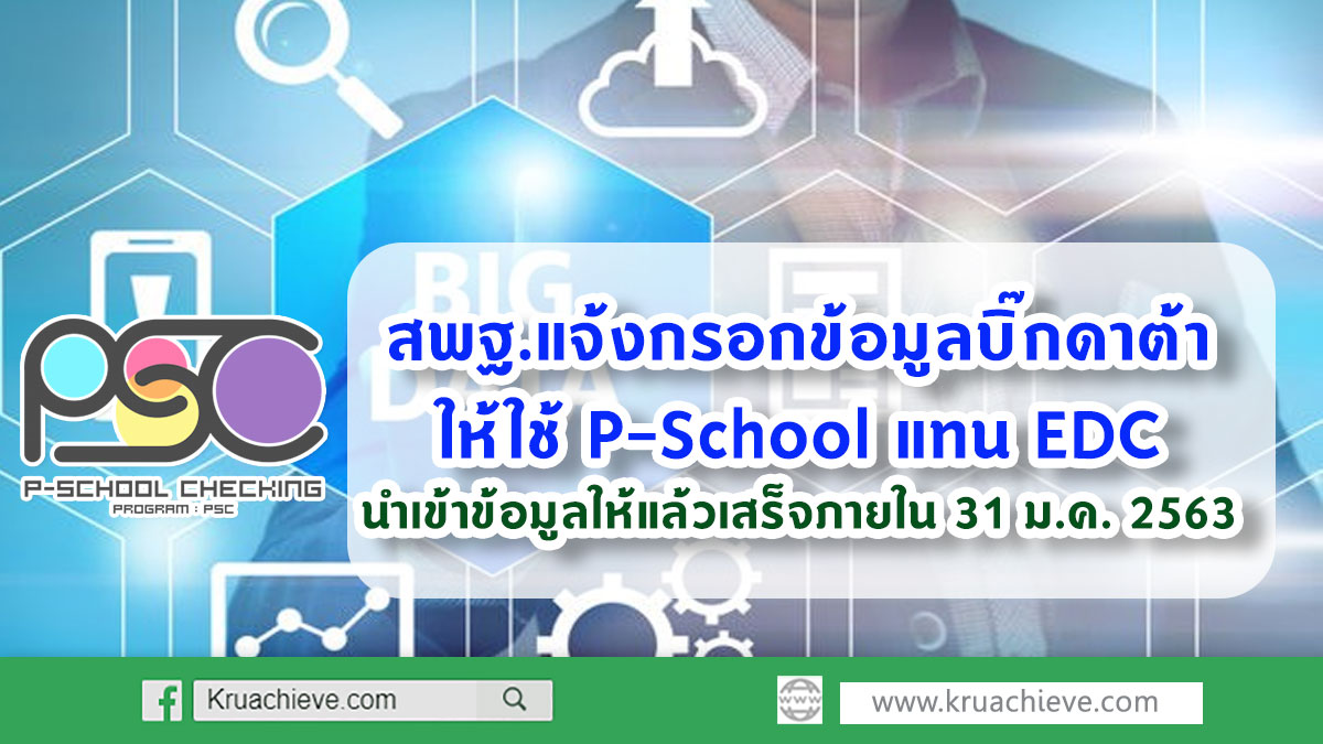 สพฐ.แจ้งกรอกข้อมูลบิ๊กดาต้าให้ใช้ P-School แทน EDC และให้นำเข้าข้อมูลครูและบุคคลากรให้แล้วเสร็จภายใน 31 ม.ค. 2563