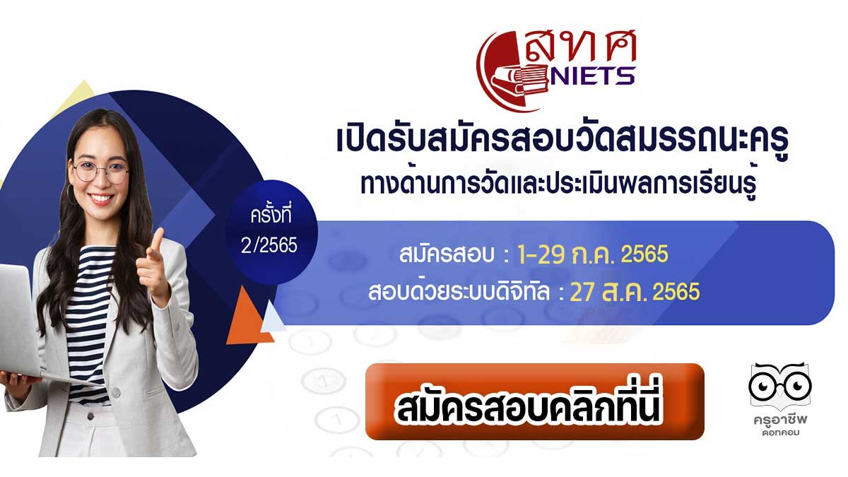 สมศ.เปิดสอบสมรรถนะครู 2565 ด้านการวัดและประเมินผลการเรียนรู้ ประจำปีงบประมาณ พ.ศ. 2565 ครั้งที่ 2/2565 สมัคร 1-29 กรกฎาคม 2565