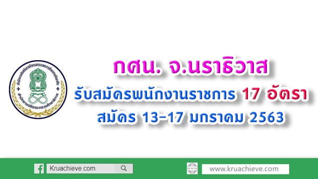 สำนักงาน กศน.จังหวัดนราธิวาส รับสมัครพนักงานราชการ 17 อัตรา ตั้งแต่วันที่ 13-17 มกราคม 2563 สำนักงาน กศน.จังหวัดนราธิวาส ประสงค์จะรับสมัครบุคคลเพื่อจัดจ้างเป็นพนักงานราชการทั่วไป